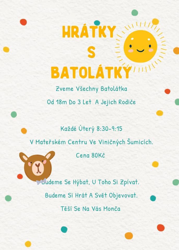 Již 4 rokem pokračujeme v pravidelném dopoledním setkávání rodičů a dětí, které nejsou ve školce. Čeká na Vás ranní káva a možnost se seznamovat. Podle aktuální nálady dětí si hrajeme, tvoříme a zpíváme. Cena je symbolická - 20Kč. Těšíme se na Vás.